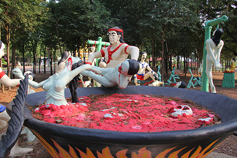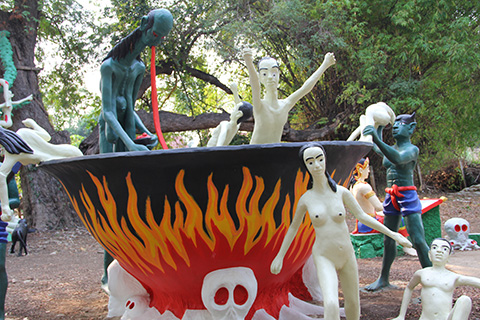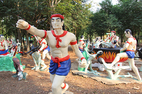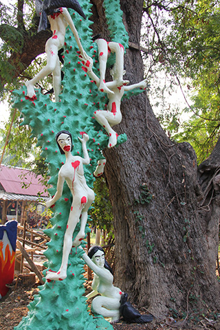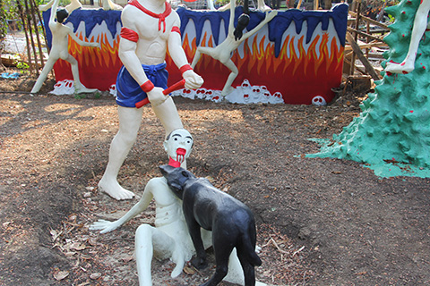 釜茹でされたり血まみれになりながらトゲトゲの木に登らされたりといった石像はあるものの、それでも想定したものより規模が小さする。