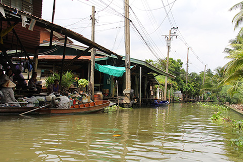 本堂から川の方に進んでいくとそこがタラートナーム(水上マーケット)。