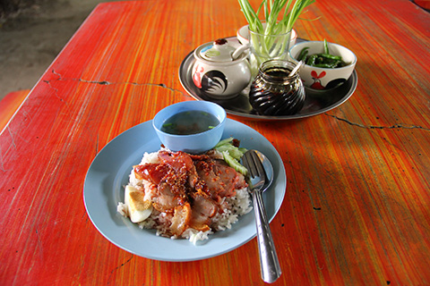 ちょっと小腹が好いていたのでここではクイティアオではなくカオムーデーンを注文してみた。