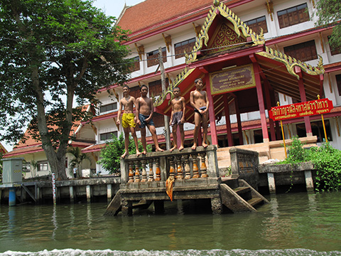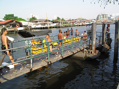 ここも小さなボートが横付けされているだけで浮き桟橋はなし、子供たちが川に飛び込んで遊んでいた。