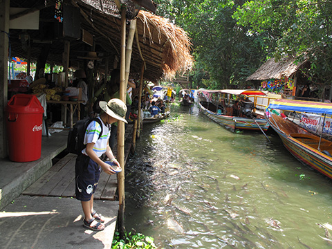 そこを抜けると車はすいすい流れ、途中道に迷いながらも40分ほどでタラートナーム・タリンチャン(タリンチャン水上マーケット:水上というのもマーケットというのも語弊があるかもしれない)に到着。
