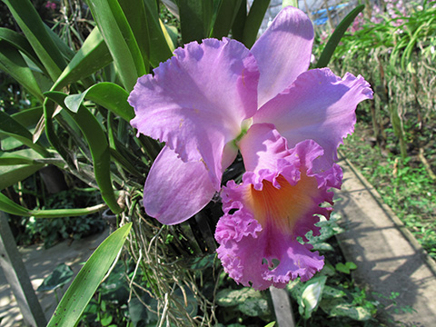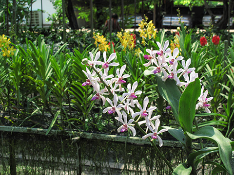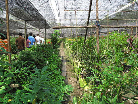 再出発時刻くらいしかガイドの説明はわからなかったので他の人の歩いて行く後を付いていくと民家の裏に蘭の栽培場が広がっていた。
