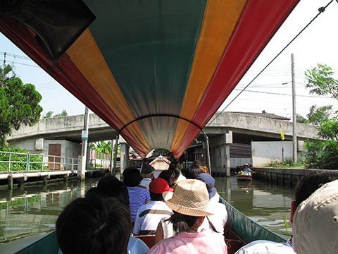 今までのアムパワーにもチャチュンサオのタラートローイピーにも、もしかするとサムチュック(スパンブリー)のタラートローイピーにもあったかも知れないがバンコク周辺の水上マーケットでボートツアーに参加したことはない。