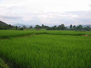小さな街は2,3分走ると両側に田圃の広がる田園地帯になり、そのままずんずん走り続けるとリス族だかラフー族だかの集落に入っていく。