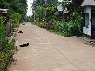 しばらくそちらに進むと犬たちがぽつんぽつんと道路の真ん中にえらそうに横になっていた。