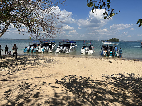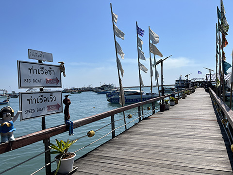 看板がなくなってスッキリしたウォーキングストリートを抜けてバリハイ埠頭へ向かい、ここからスピードボートでラーン島に渡る。