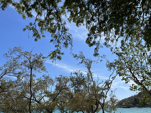 以前にシュノーケルを着けて島の間に泳いで行ったら流れが強くて流されそうになった。