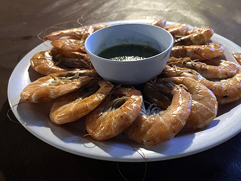 グンパオ(海老の炭焼き)はエビが小ぶりで数が多いので食べるのが面倒。