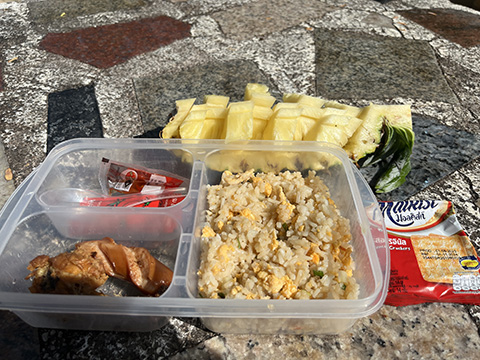 サメットから積み込んで来たカオパットは以前よりマシになり、デザートにパイナップルとスイカが付くのが今にして思えばフルーツが豊富なタイらしい。