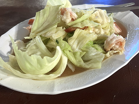 ガーラムプリーパットナンプラー(キャベツのナンプラー炒め)を頼んだら「少々お待ち下さい」と厨房に引っ込んだウェイトレスが「今日はガーラムプリーはありません」と言って来た。