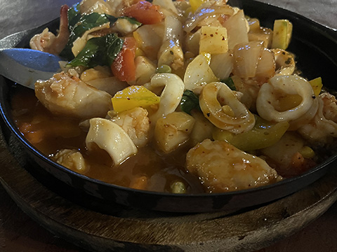 近くの席のタイ人客が頼んでいるのを見て注文してみたシーフードの鉄板焼き。