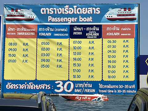 | 1/2 | パタヤ- ゴ・ラーン | スピードボート | 250THB | 15m | 往復 |