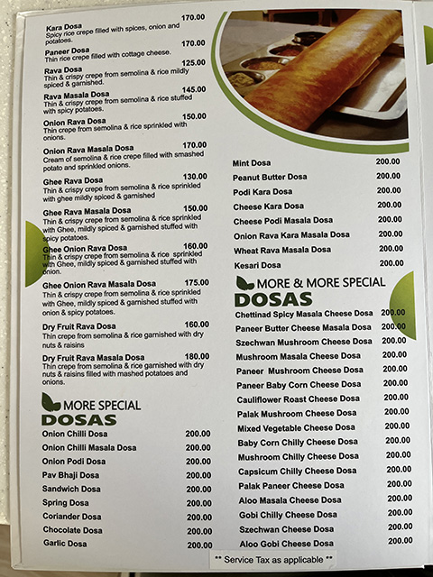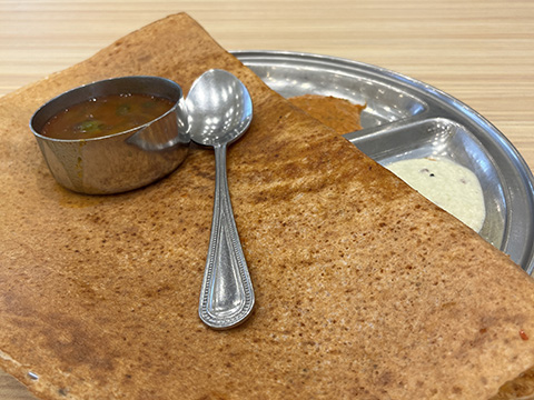 南インド料理レストランの世界最大チェーンを謳うだけあってここはドーサの種類が豊富、メニューのほぼ2ページに渡って並んでいるが、その中でもこのドーサは別格。