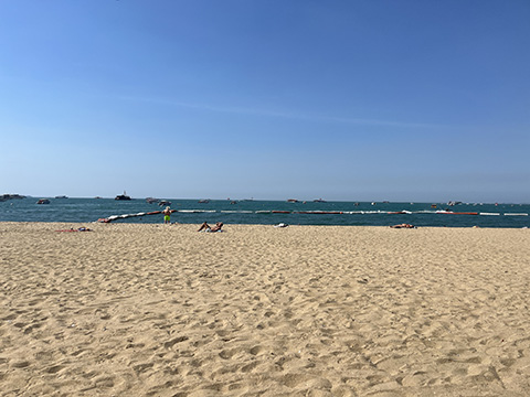 気温は最高が30度で最低が26度、水はちょっとだけ冷たいが空は真っ青とベストシーズン。