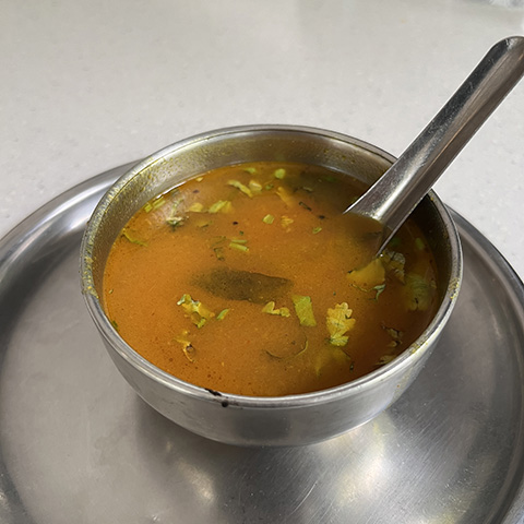 ラッサムは酸味と辛さ、ニンニクのバランスが良い。
