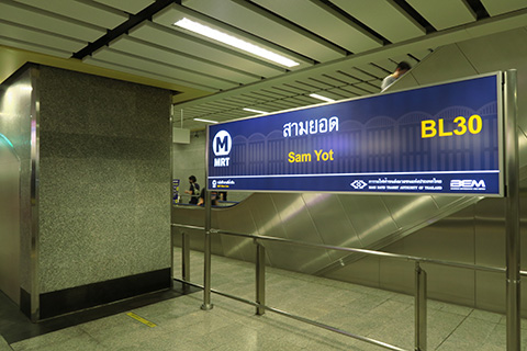 シーロム駅からMRTブルーラインに乗りサームヨート駅で降りる。