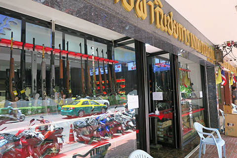 そのサムヨート駅から、昔からあるショッピングセンターのOld Siamにかけてはガンショップが並んでいた。