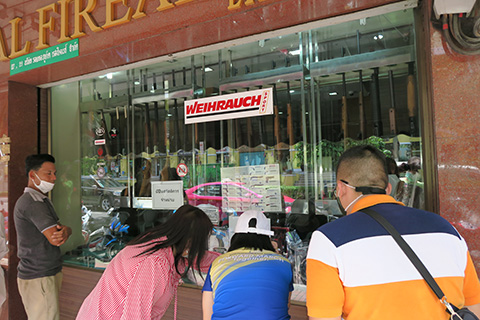ワットプラケオ周辺で銃砲店を見かけたことはあるがこれだけ密集しているエリアがあるのは知らなかった。