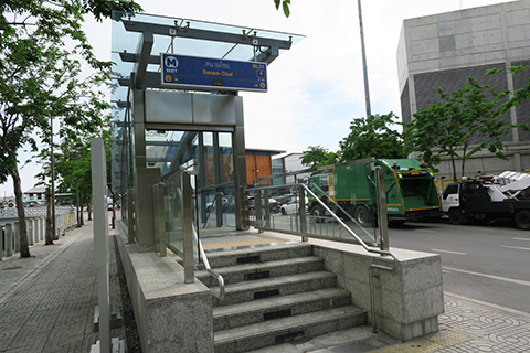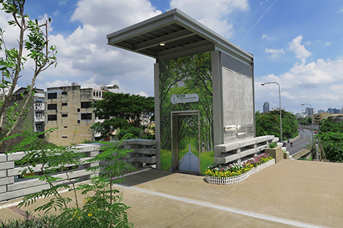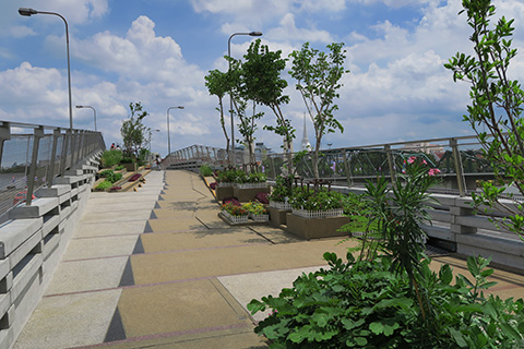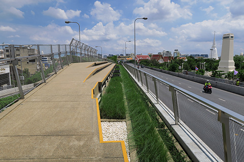 こちらはBTSが計画された際に車道の間に公園を兼ねた歩行者通路を作ろうと計画したものの、それがとん挫ししばらく放って置かれた後に昨年になってやっと建設が再開し計画から30年かかって完成したとのことであった。