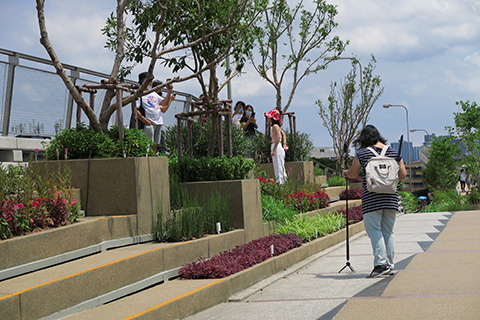 休憩用のベンチや撮影スポットも用意されいかにも今風なのであるがそのぶん植えられた木々はまだまだ小さく日陰は皆無。