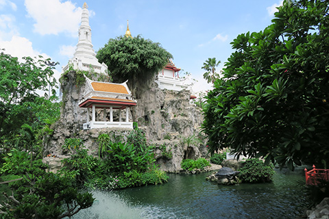 するとそこはWat Prayoonwongsawatという寺で道路に面した部分からは地獄のような、中国庭園のようなものがのぞいている。