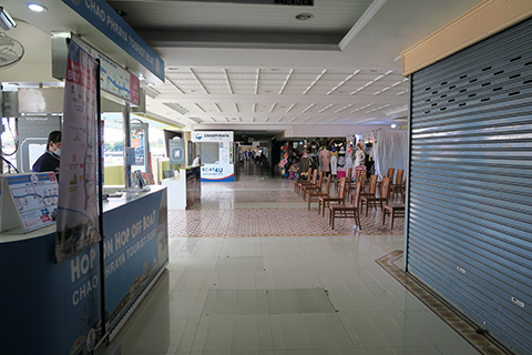 そのボートで到着した船着き場のYodpim River Walkはほとんどの店がシャッターを下ろしておりゴーストタウン。