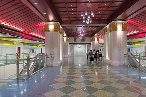 内部の天井がタイスタイルの高級ホテルのロビーのようでタイもやるなと思いつつ外に出たら駅舎は王宮のあるラタナコーシンエリアにある歴史のある中華風の外見だった。