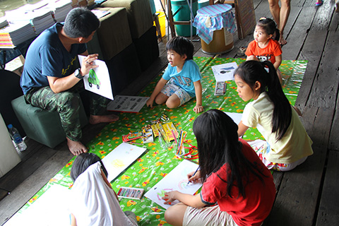 英語の単語を交えながら幼児に絵を教えていたのは大学生だろうか。