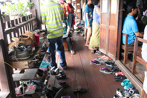 家の前に脱ぎ散らかされた無数の靴でそこがバーンシラピンであることがすぐにわかった。