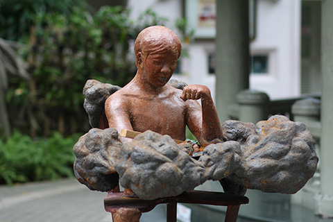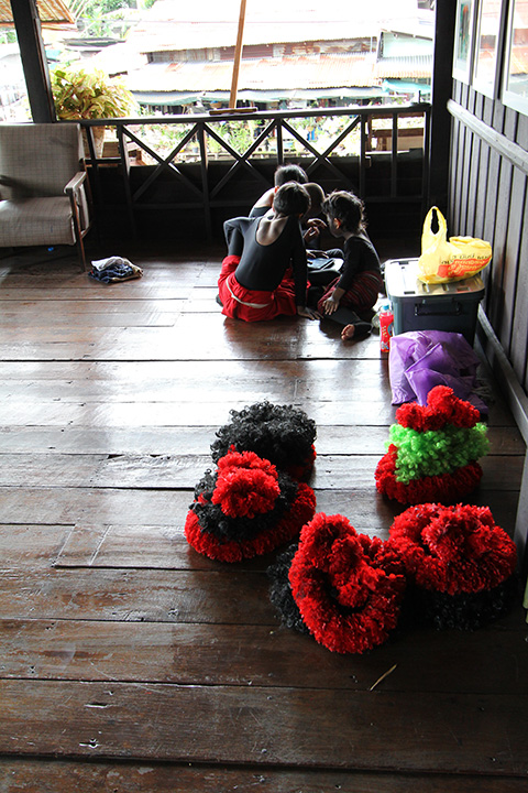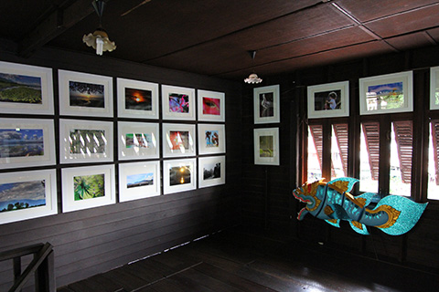 2階に上がると壁にはタイの各地で撮られたらしい写真が展示され、奥の部屋では先ほどの黒人姿の子供たちが休憩をしていた。