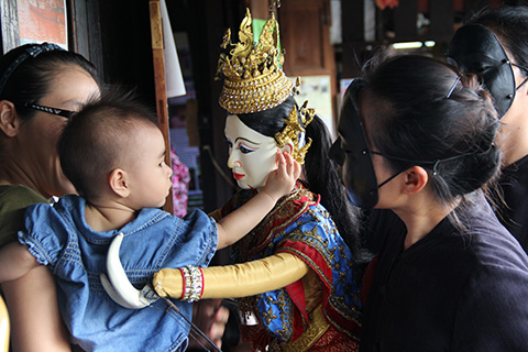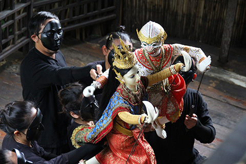 人形劇はたぶんラーマキアン(タイ版のラーマーヤナ)、女性と鬼とのやり取りが演じられていた。