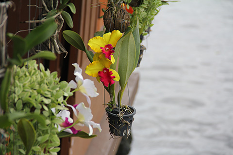 時折やってくるロングテールボートの写真を撮りながら橋を渡りとりあえず右手に向かう。