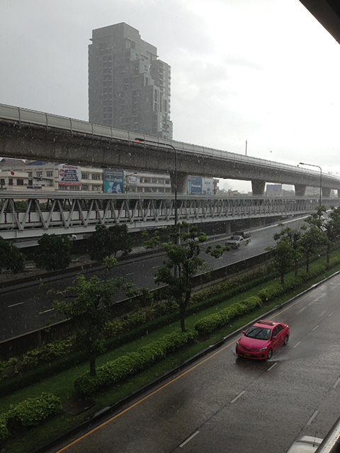 空が雲に覆われ風が出てきたので足を速めて帰路に着くとソムデットヤーでタクシーに乗り込んでまもなく土砂降りになった。