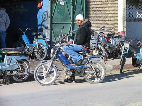 ヨーロッパからのライダーは大型オフロードバイクだがチュニジア人はもっぱらモペッド。