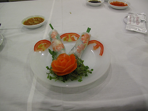 ハノイで食べた海老の擂り身をサトウキビに巻いた料理がうまかったのでそれが欲しかったのだがどれかわからずまずは定番の生春巻き。
