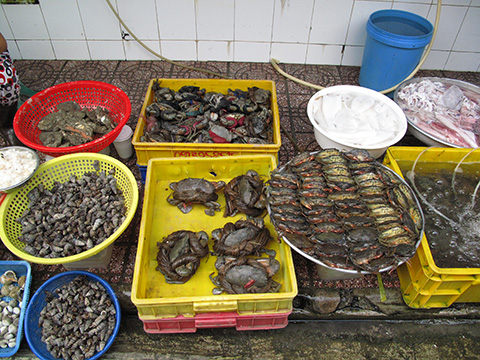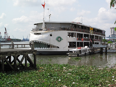 川にはディナークルーズ用らしき鯨のような塗装の3階建ての船や、手近なビーチリゾートであるブンタウ行きの高速船が停泊していた。