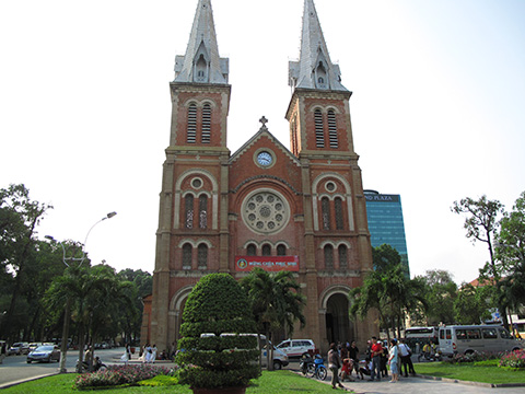 ハノイの教会もこの形だったが2つの尖塔を持つこのスタイルはキリスト教会では一般的なのだろうか。