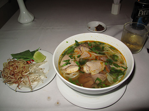 これも数少ない好きなベトナム料理のうちの一つであるフエ名物の辛いそば。