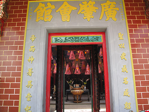 飯屋に向かう途中、中華系寺院の前を通りかかるとここでも渦巻き線香からもくもくと煙の立ち上がっているのが見えた。