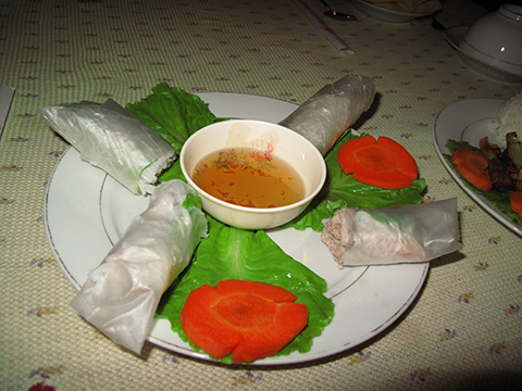 ライスペーパーはちょっと堅かったがヌックマムの塩気がいい。