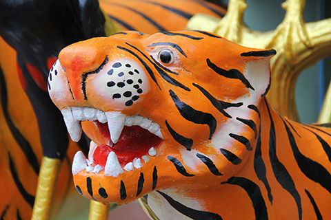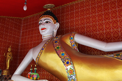 Dacoにはトラやロバなど動物の像が置かれてあるとのことで地獄寺のようなものを期待して橋を渡っていったら、ミャンマー風の、微笑んでいるような寝釈迦仏が珍しかったもののそれ以外はぱっとしなかった。